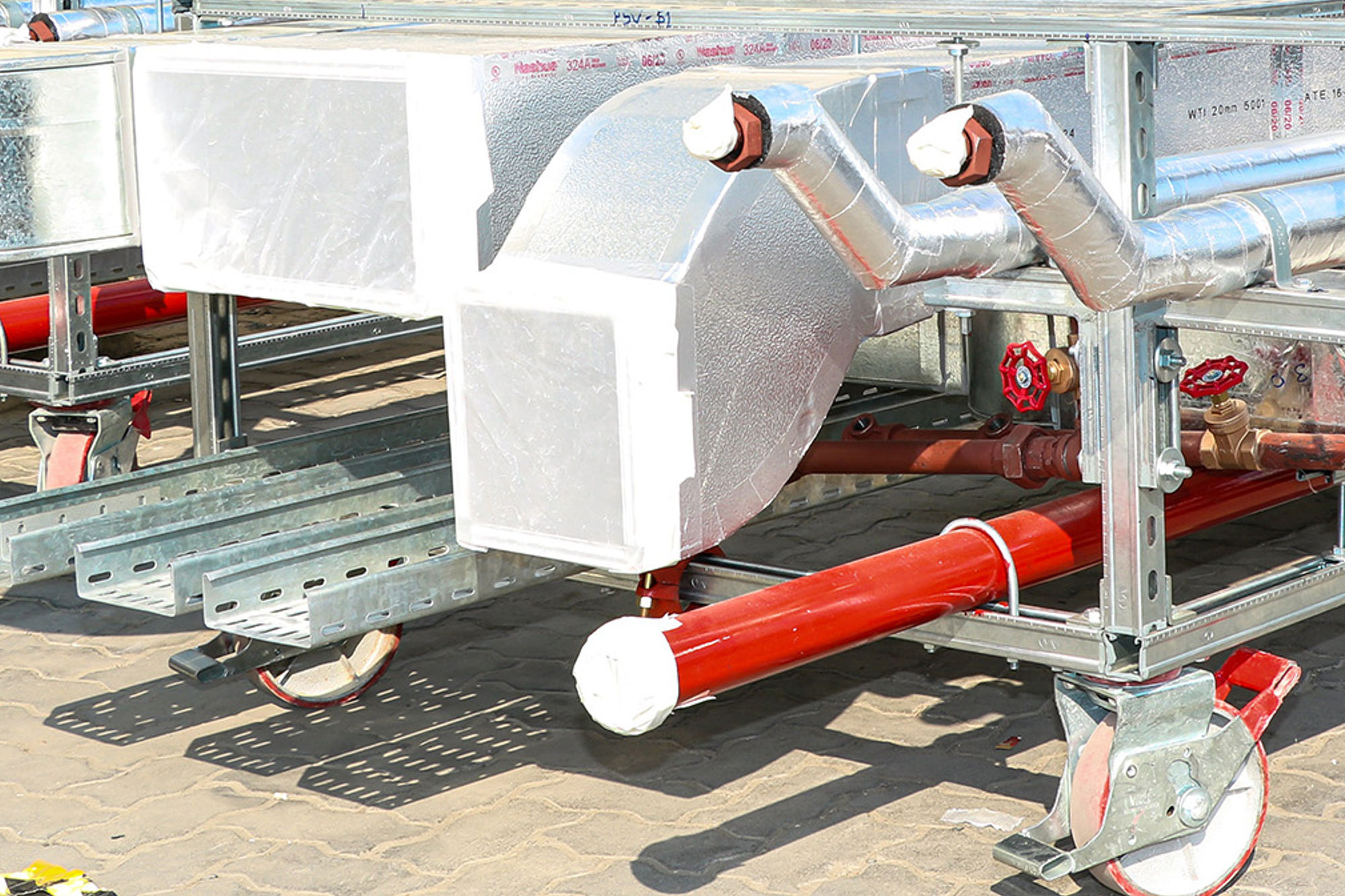 In the heart of the City, State of the art Modular Factory is built on a 14,000 sq. ft. facility in Ras Al Khor to ensure the rapid delivery throughout to meet the requirements of our projects in U.A.E. The pre-fabricated modular frames are constructed in a controlled environment with precision to reduce the space constraints and increase efficiency, quality and reliability in a cost and time effective manner.